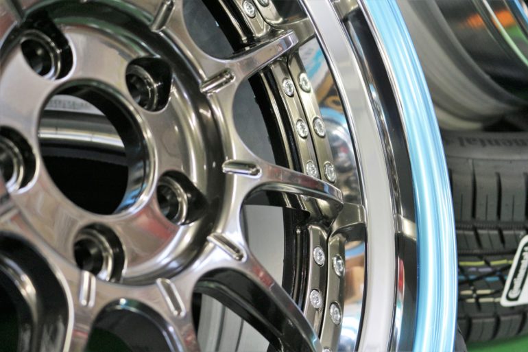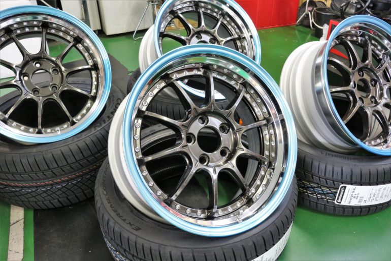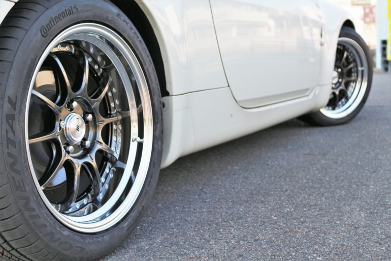 以前のホイールは前後同サイズでしたが今回は8.5Jと9.5Jの前後サイズ違いでご用意