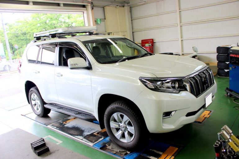 本日はこちらの150系後期型プラドにタイヤホイールセットを装着。