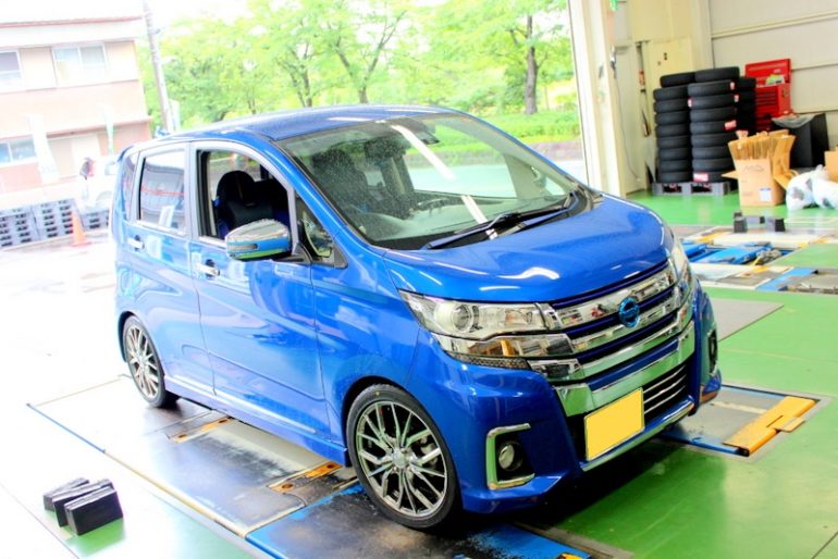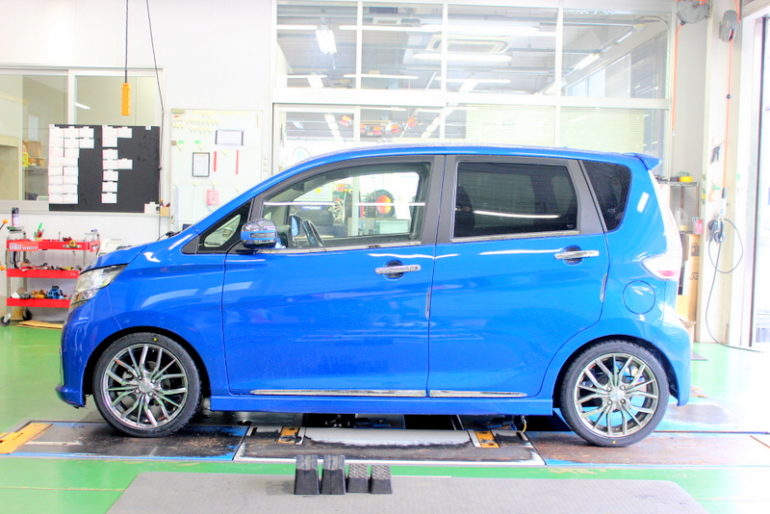 本日は既にレオニスLVを装着中のこちらのデイズをローダウン。