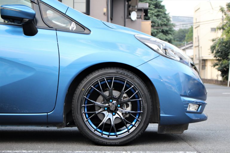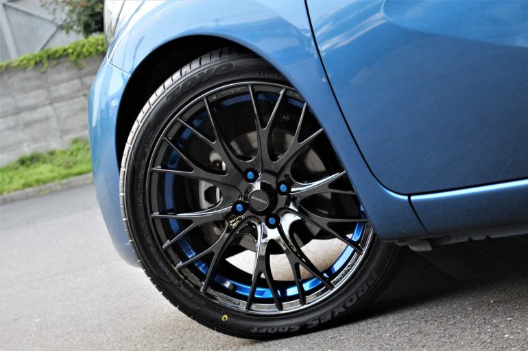 今回は鮮やかなブルーのボディに合わせたこちらのホイールを装着です(*^^)v