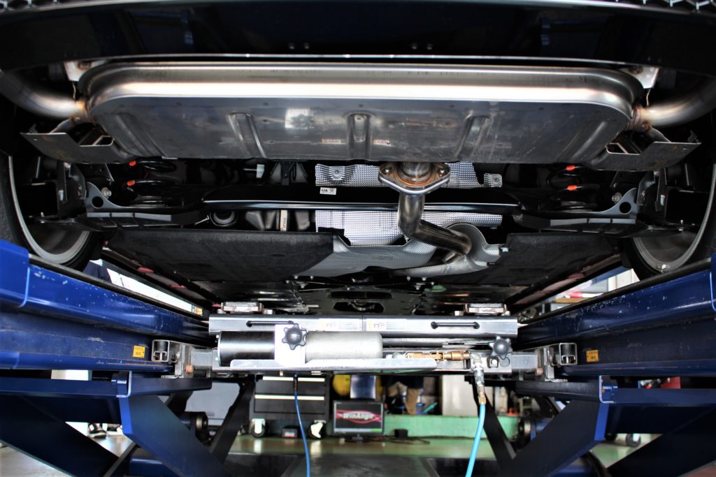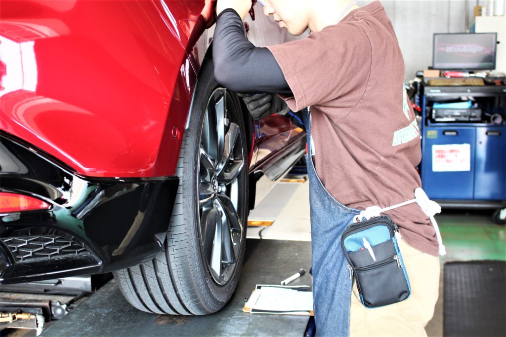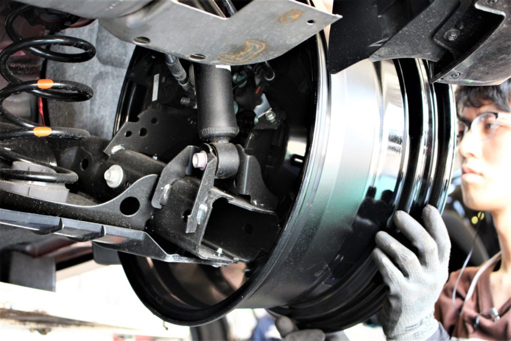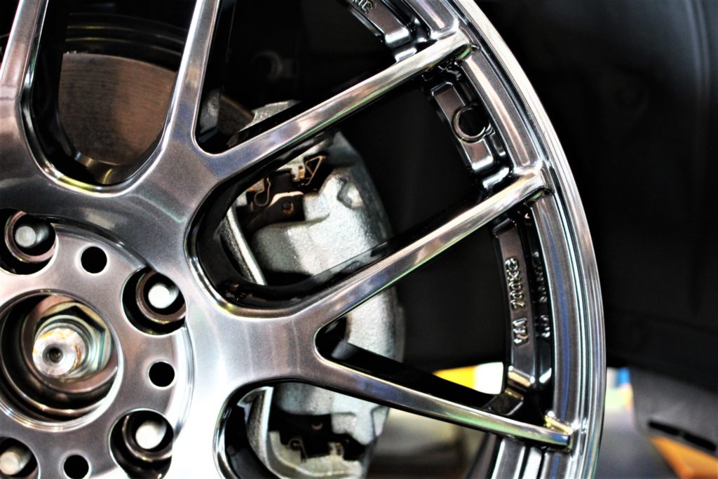 ホイールと車両側でクリアランス確保がどれくらいできているかを確認していきます。