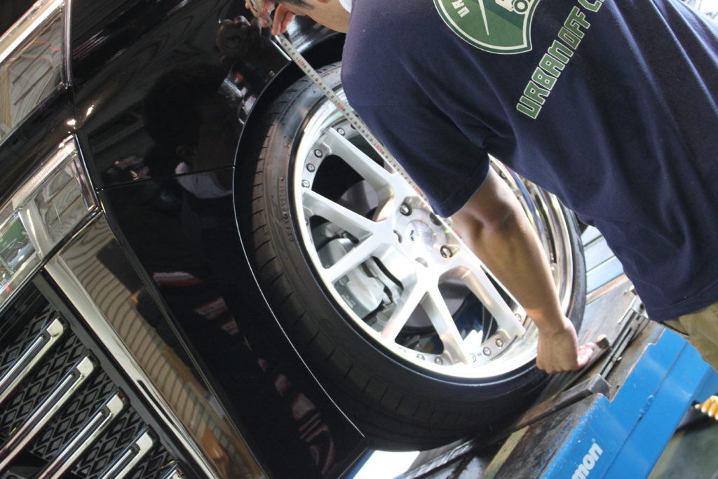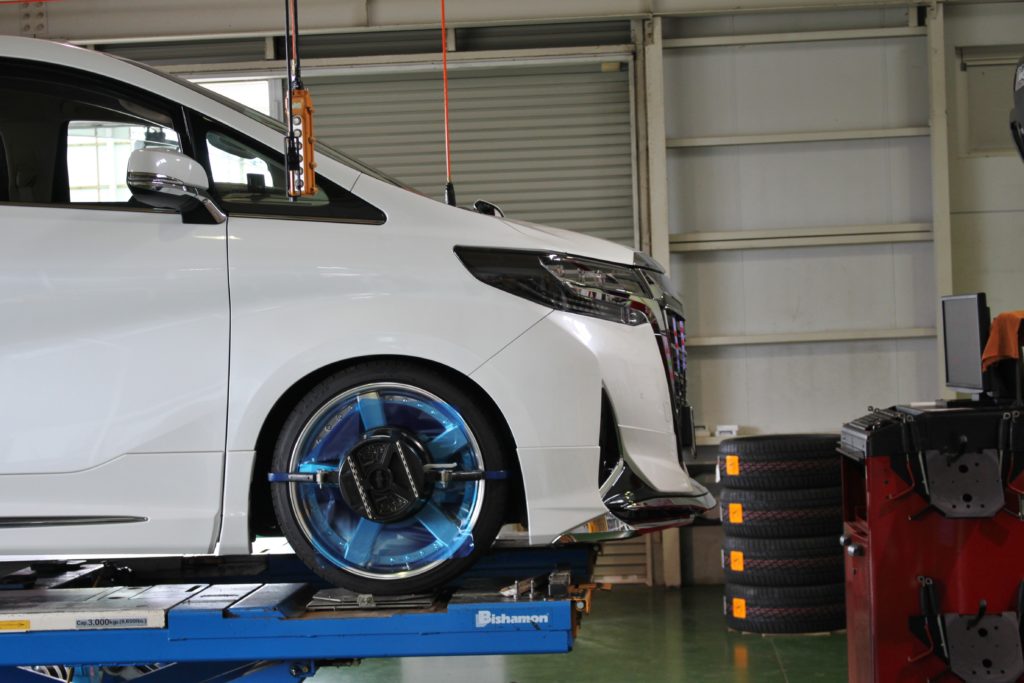 一台目と同じくジスタンス履きの30ヴェルファイア。前後9.5Jでリム仕様がカットアルマイトとなります。