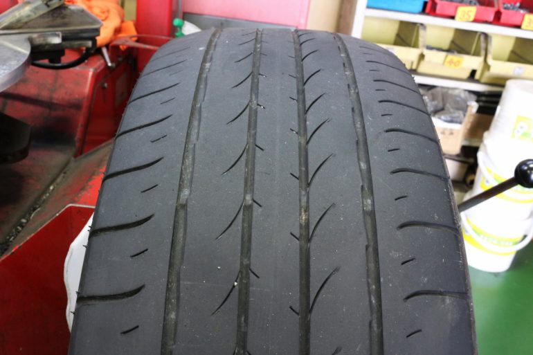 交換前のタイヤはスリップサインまであと少しという状態、