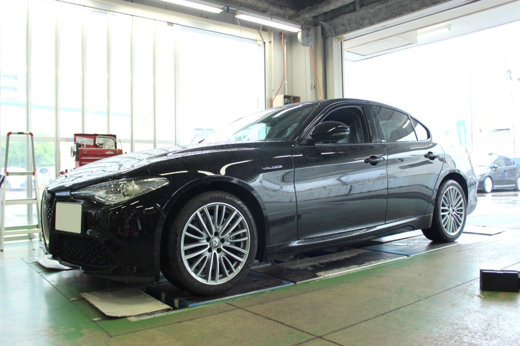 ジュリアはブレーキキャリパーがブラックでグロスブラックのホイールと相性が良いですね~。