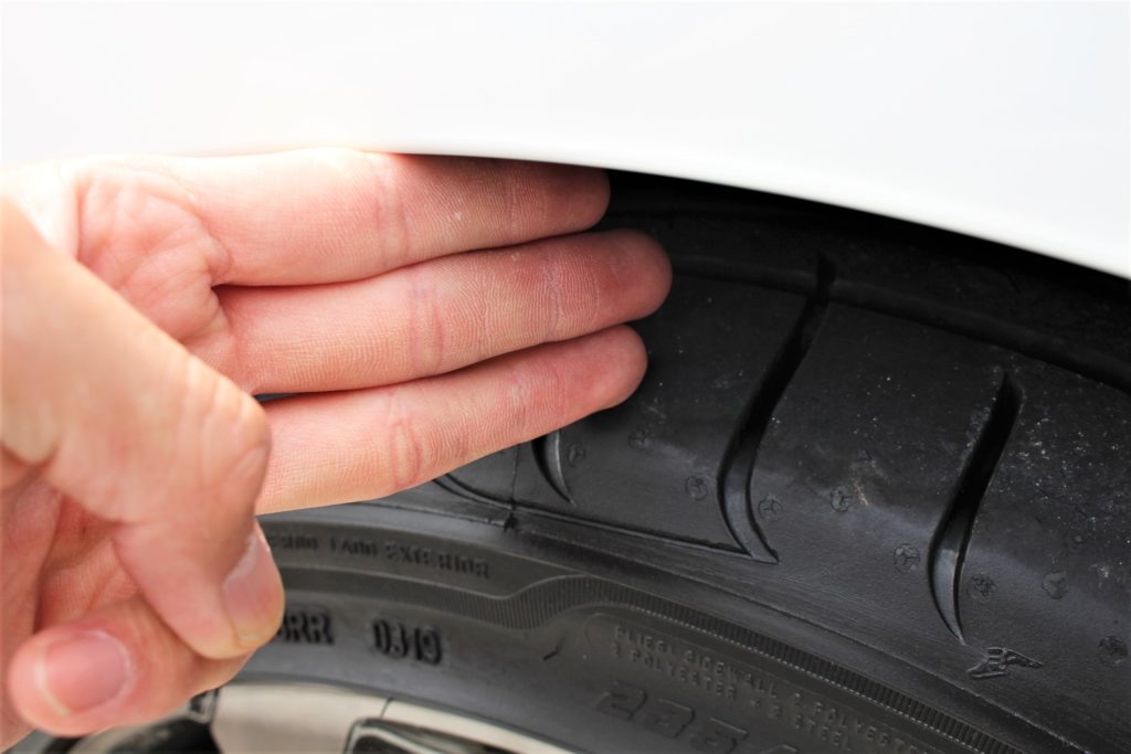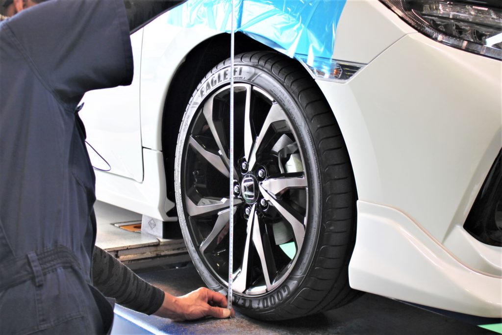 ご入庫時で指が3本ほど入るフェンダークリアランス。