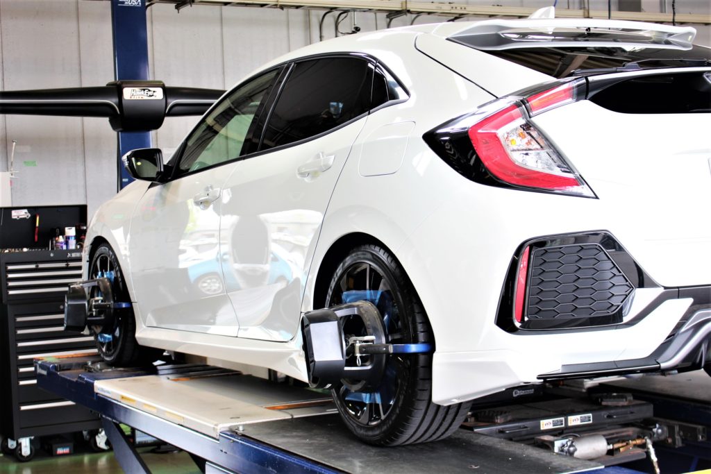 車高調の取付が完了したらアライメント測定&調整作業へ。