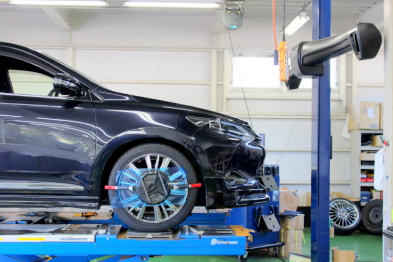 ローダウン時や車高調整時のアライメントは必須項目ですので、