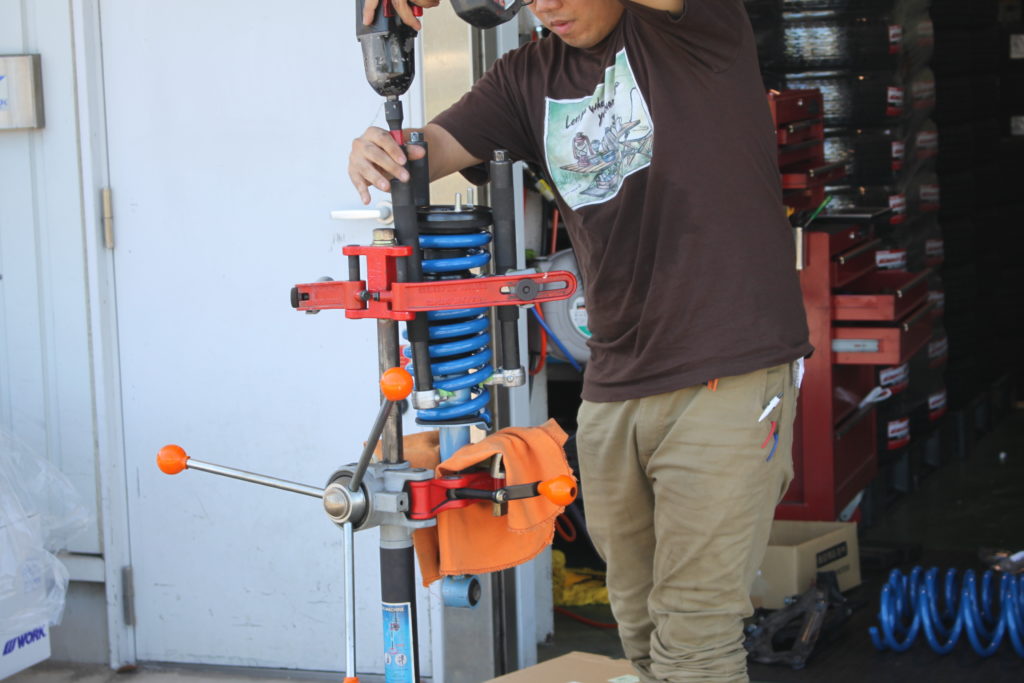 作業前と作業後との車高の変化を見るため重要な作業です。