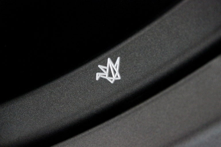 余談ですが、リム部に鶴のオリガミをかたどったマシニングが・・・