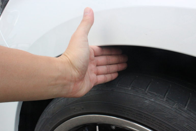 取り付け前のクリアランスは、245/40R20のタイヤを装着し、指4本以上。