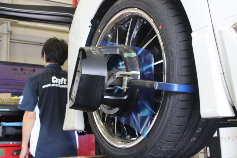 アライメントは直進安定性、編摩耗の抑制等、愛車を長く乗っていただく際に非常に大切な作業^^