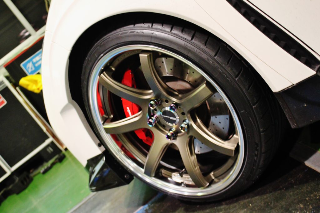 純正8.5Jから9.5Jに幅をアップ。