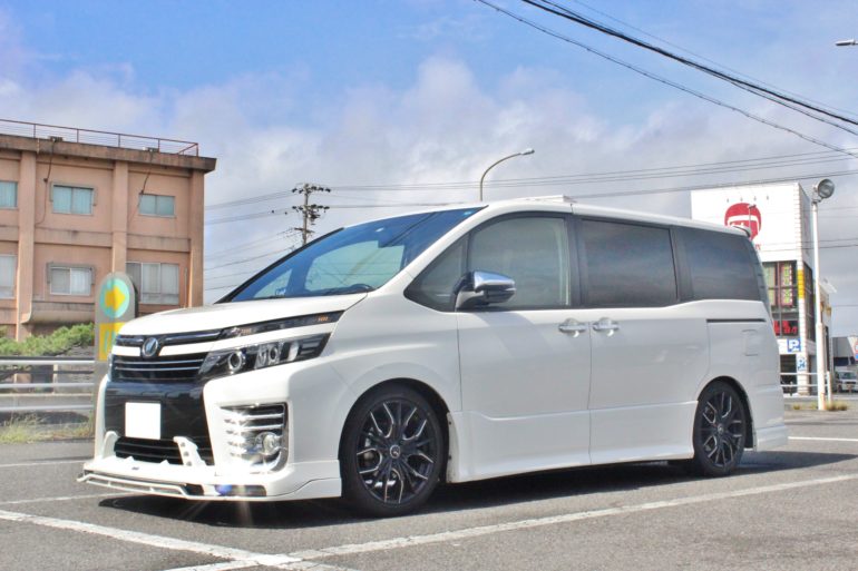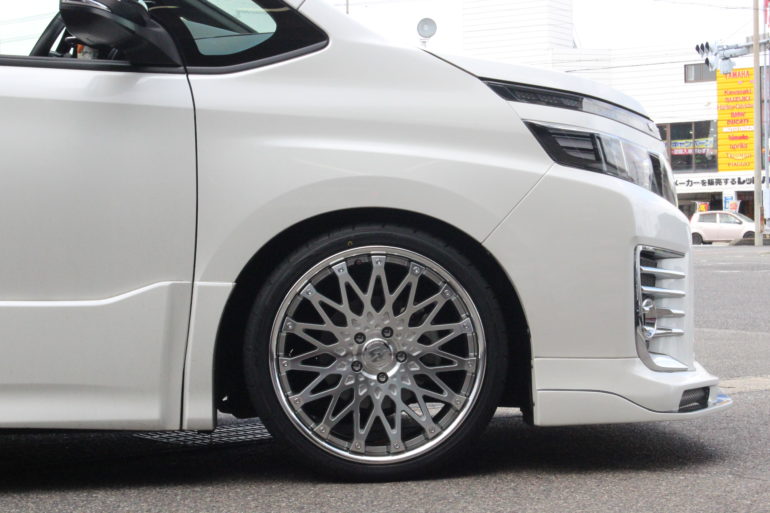 ホワイトボディのVOXYにシルバーポリッシュのホイールは