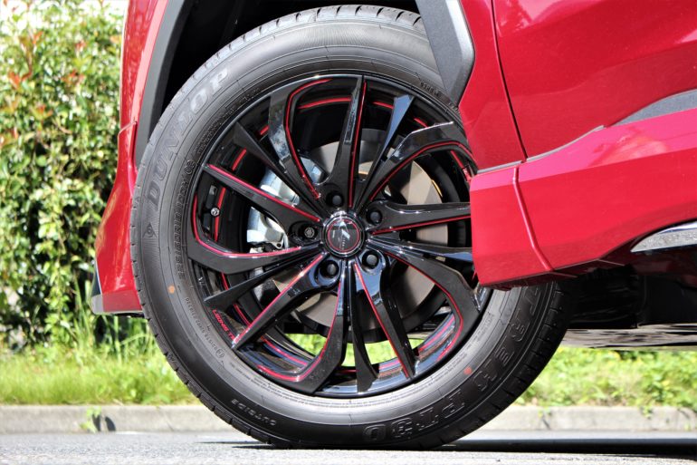 ボディカラーに合わせて、赤いライン入りのホイールをチョイス!