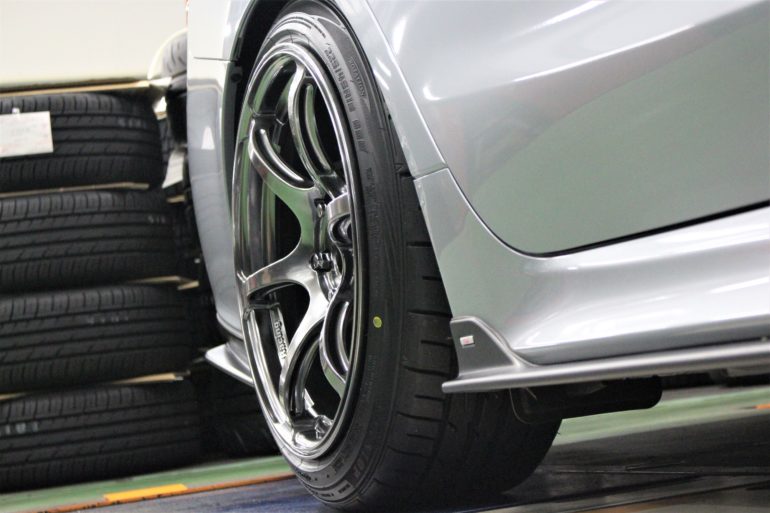 当然ですが、車高を下げただけではこのサイズは装着不可。