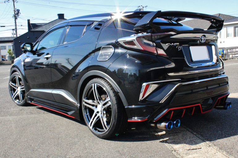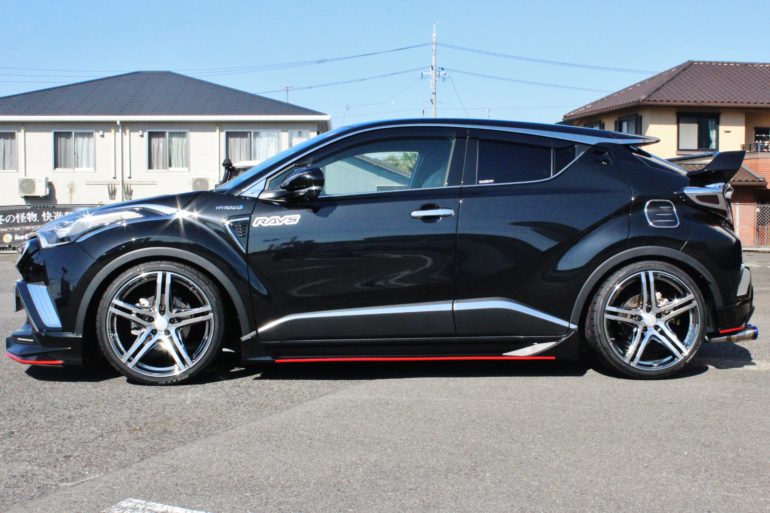 BLITZ車高調でしっかりローダウンされたC-HRに、20インチをツライチセッテイング。