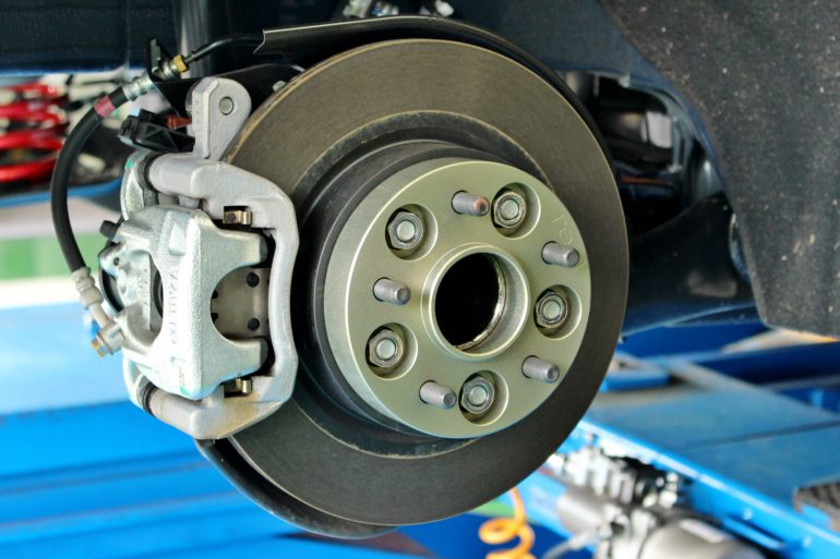 まずはホイールを外して車輛に装着し付属のナットで固定。