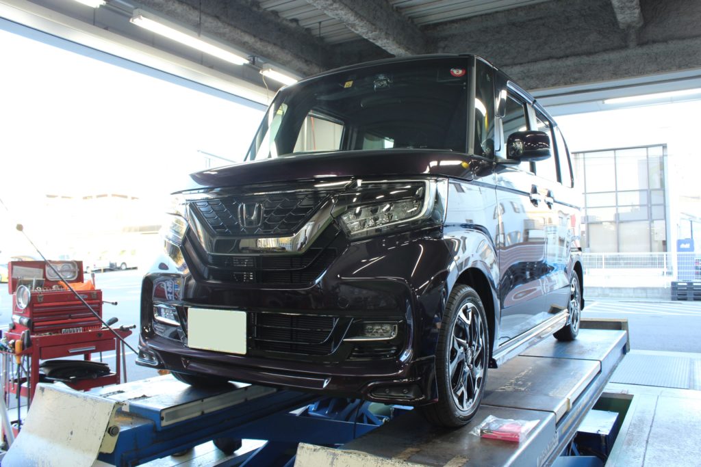 本日はホンダ N-BOXカスタムにNEWホイールセットをお取付致しましたのでご紹介いたします~。