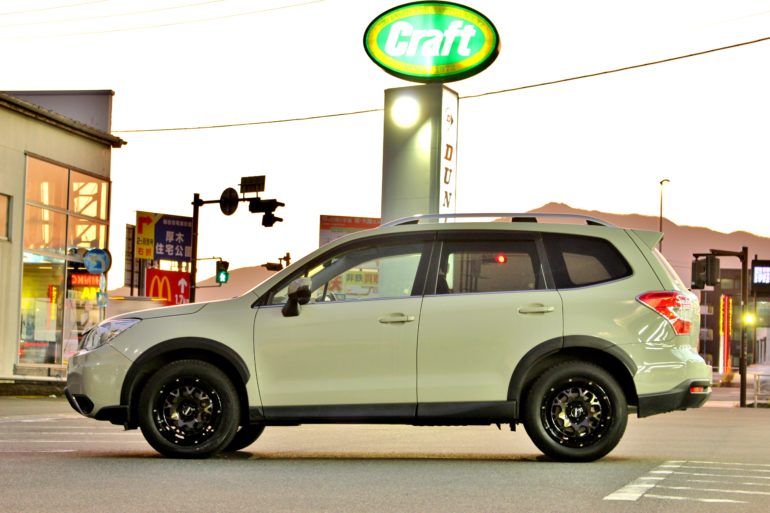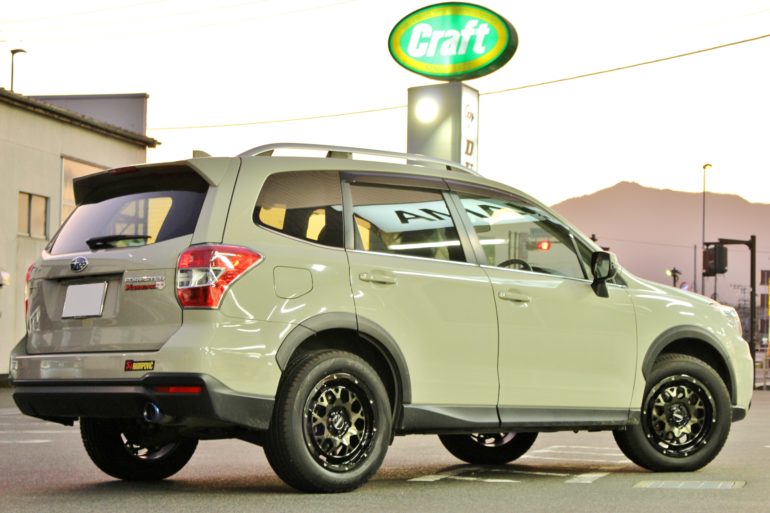W様・フォレスターのミリタリーカラーとホイールの色味も相性バツグン!!