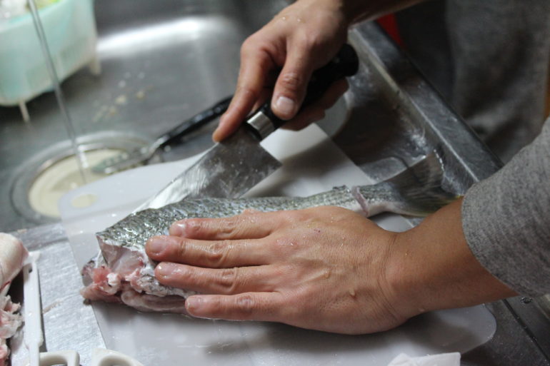 出刃を持ってきていなかった為、両刃で捌いて行く事に・・・