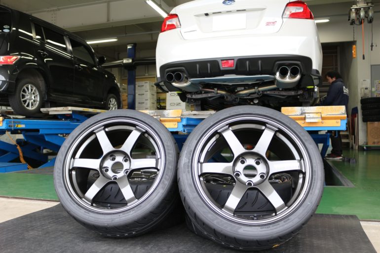 ■WRX STI のサーキット仕様!9.5J×18インチのTE37 SAGAにムッチリマッチョな265を。