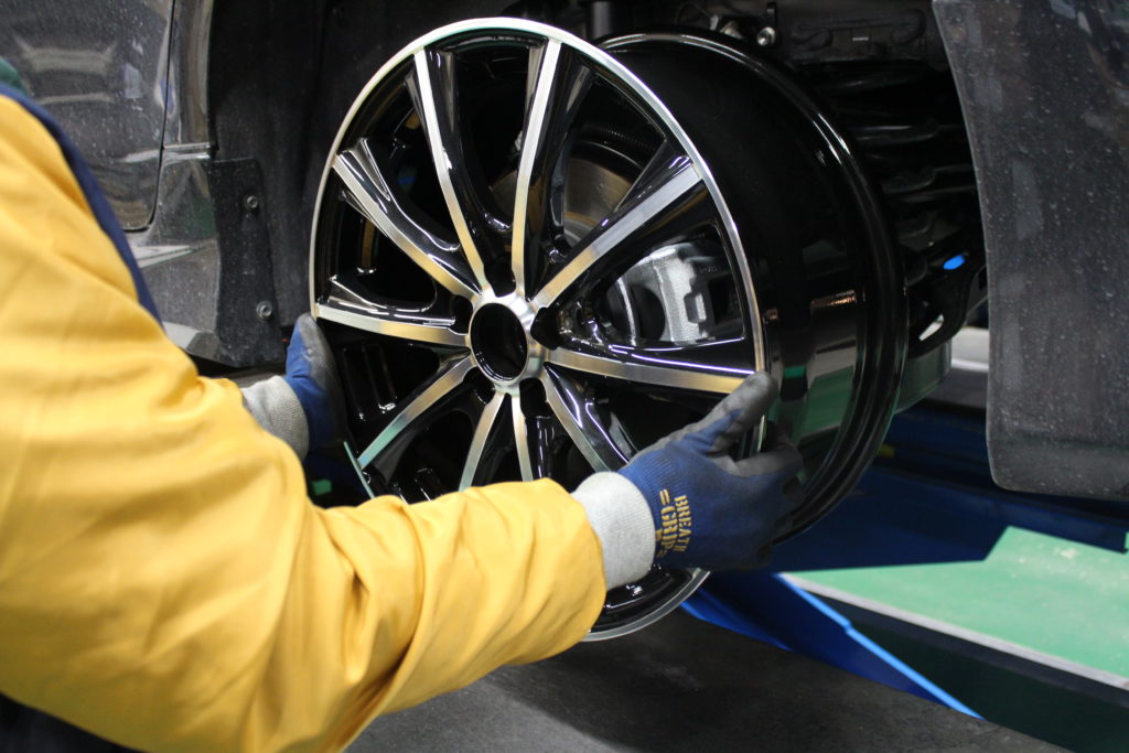 今回は在庫限りの「アクセルフォー」のブラック/ポリッシュカラーをスタッドレスとの組み合わせで取り付けです