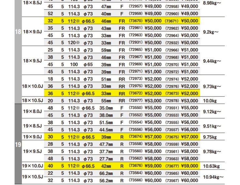 インチアップサイズや鍛造モデルが多いかと思いましたので、