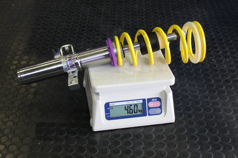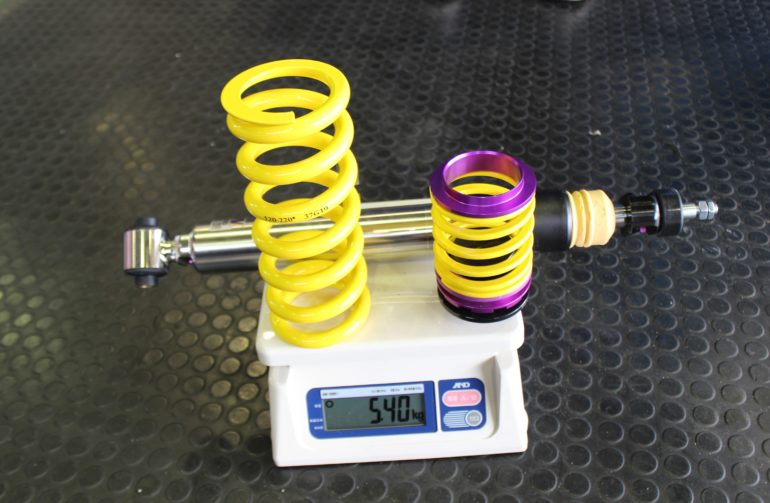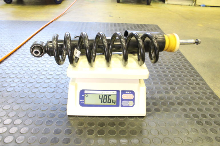 ヘルパースプリングやアジャスターが含まれる為、純正と比べて0.54kg重い結果となりました。