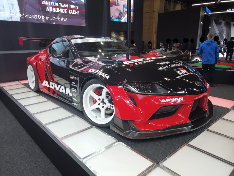 ヨコハマブースは赤×黒のアドバンカラーが印象的なGRスープラです