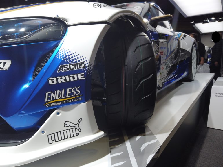 トーヨータイヤブースにはD1ドライバーとして大人気の川畑真人選手のD1マシンが展示されていました