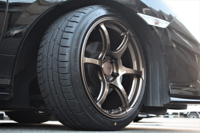 純正と同じタイヤサイズですが、幅広ホイールと銘柄の違いで