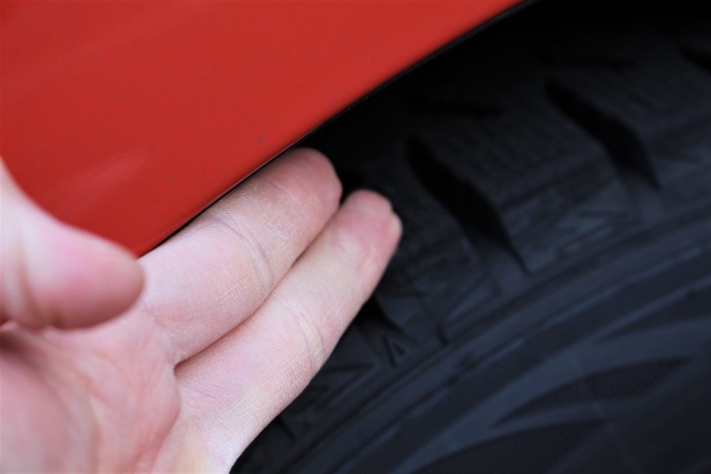フェンダークリアランスは指2本分ほど。