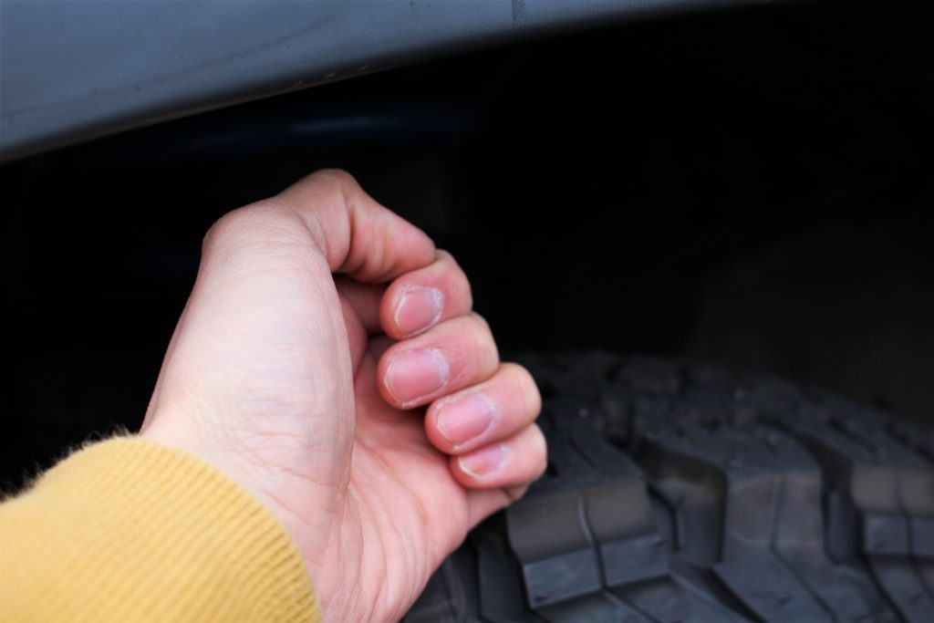 ご入庫時は拳一つ分のフェンダークリアランスも+指2本が入るほど