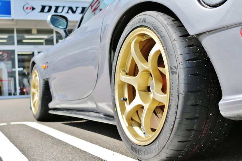 ■RX-7のタイヤ交換。デビューしたばかりの新作、ポテンザRE-71RSを。