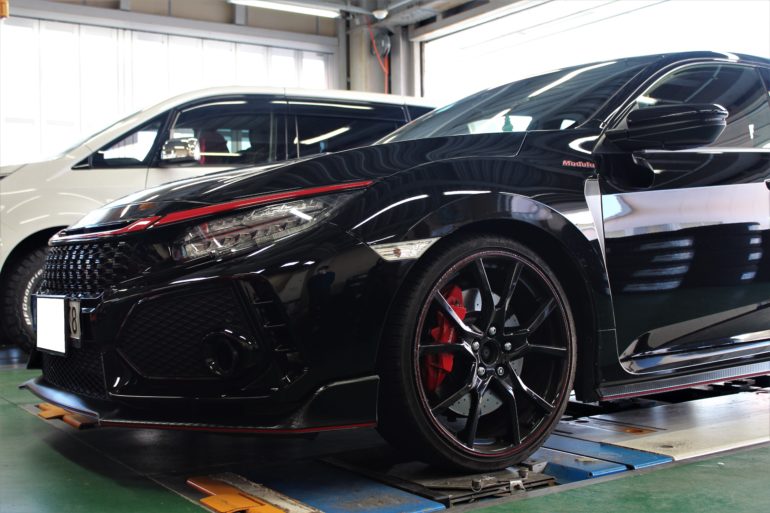 ■【FK8シビック タイプR】ボルクレーシングG025をツライチ装着! 皆様こんにちは!クラフト中川店の長縄です。 本日のご紹介は”FK8シビック タイプR” ハイパフォーマンスカーらしい張り出したフェンダーがカッコいい1台(*^^*) 軽量鍛造ホイールをツライチ装着です!! ■RAYS  VOLK RACING G025 レイズの鍛造ブランド「ボルクレレーシング」ロングセラーモデルのTE37シリーズは太い6本スポークで力強いデザインで人気ですが”G025”は極細スポークと軽量加工デザインで人気です! コンケイブはFACE-3なのでセンターに向かってスポークがしっかりと落ち込むことで迫力満点です(´艸`*) センターパートにはG025の特徴であるウエイトレスホール(穴あけ)が多数あり軽量化の追求された機能美がヒカリます♪ ホイールナットにはレイズ フォーミュラーナットFN-Ⅱのブルーを装着! ボディカラーに合わせたナットカスタムもオススメです(*^^)v ニューセット装着後、アライメント計測を実施 定期的なアライメント計測で適正な足回りを保つのがベストです◎ 異常があれば調整をしますが今回は適正範囲内だったの計測のみで作業完了です!!   それではビフォーアフターをご覧ください! 【BEFORE】 【AFTER】 WHEEL:レイズ ボルクレーシング G025 19インチx9.5J COLOR:シャイニングブラックメタル/リムDC NUT:レイズ フォーミュラーナットFN-Ⅱ   【side view/BEFORE】 【side view/AFTER】 純正では20インチを装着するFK8ですが今回は19インチを装着することでエアボリュームが増して乗り心地も良くなります。 外観ではブレーキのミチミチ感がGOODです♪ この度はありがとうございました。 また、増し締め空気圧点検でお待ちしております。 クラフト中川店でした!!