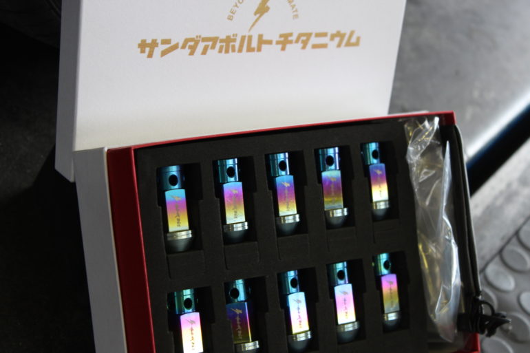 本日は噂のサンダアボルトチタニウムのホイールナットのお取り付け。