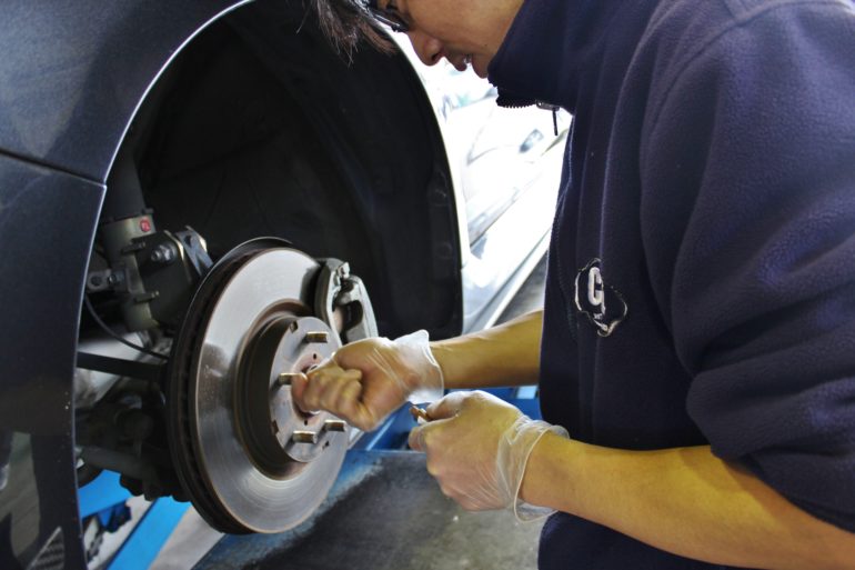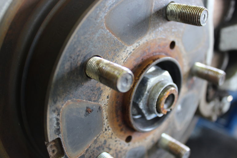 当店のPITの長、山田氏がなにやらハブボルトに塗っております。