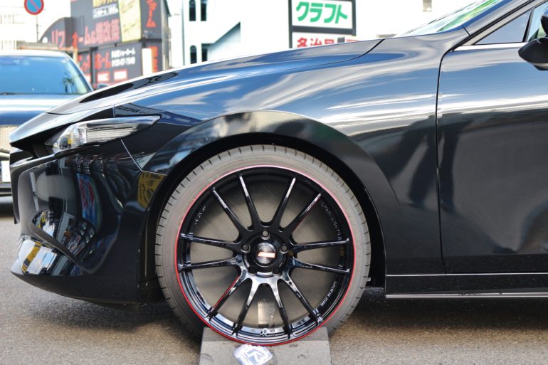 マツダ3セダンをデッシュホイールでツライチに。WORK ランベックLDZの19インチを装着しました。