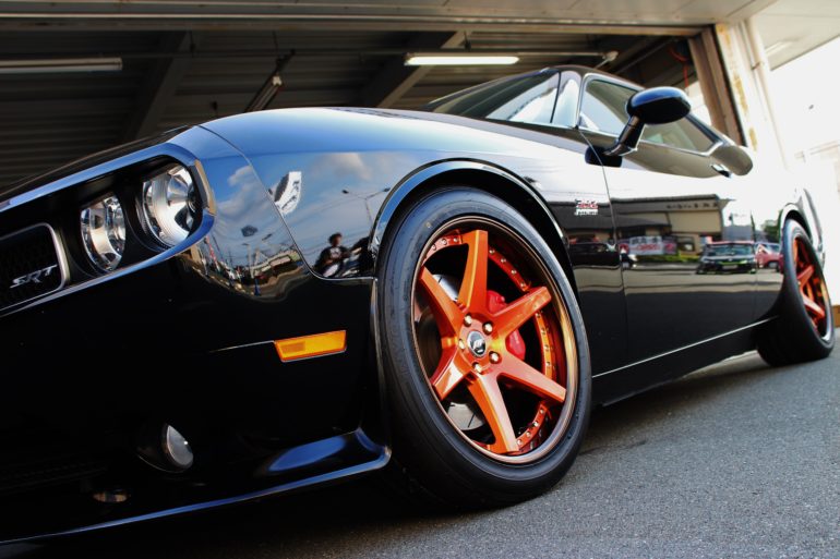 当店で取り付けいただいたダッヂ チャレンジャーにはカッパークリアカラーにブロンズリム仕様☆