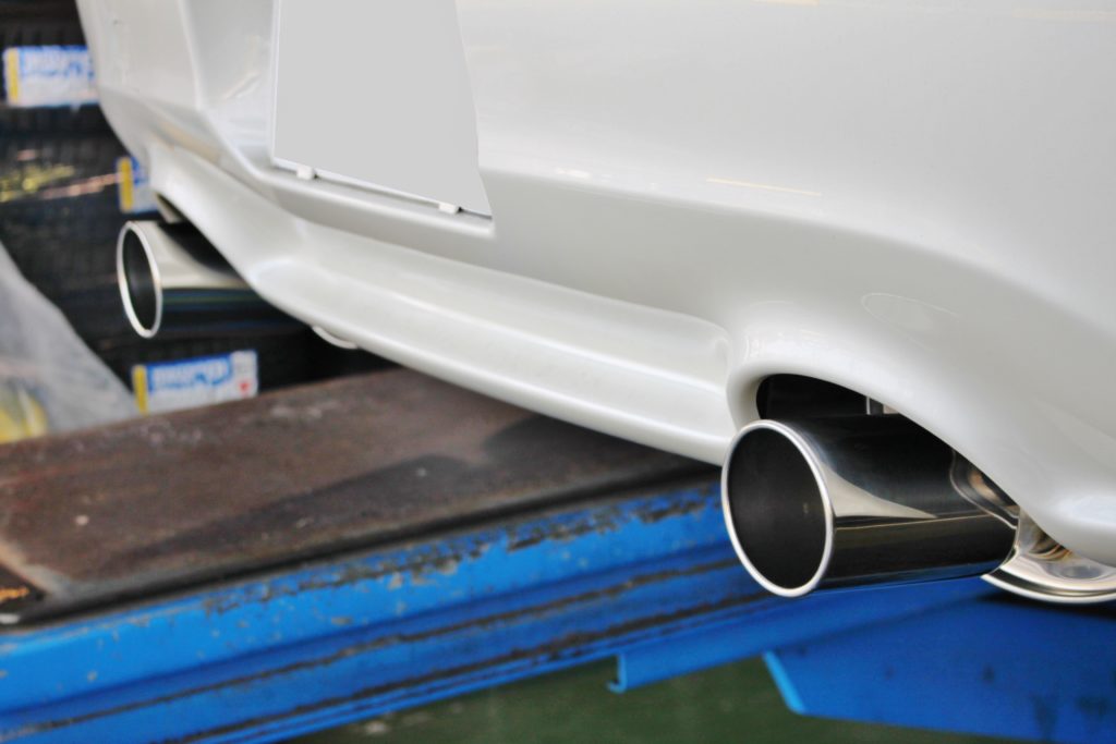 マフラーの角度、エアロとのクリアランスを左右で