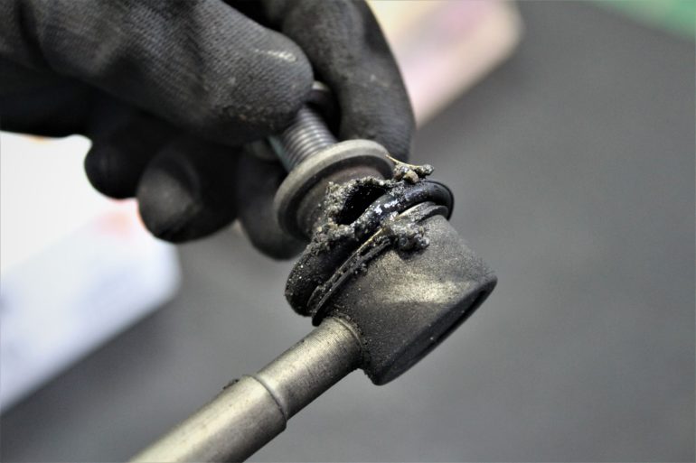 劣化によりフロントスタビリンクのブーツがパッカリ破れちゃってます・・・