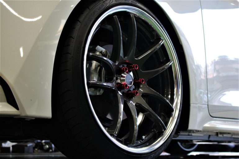 車高調取付→実車計測→ホイールオーダーという流れ。