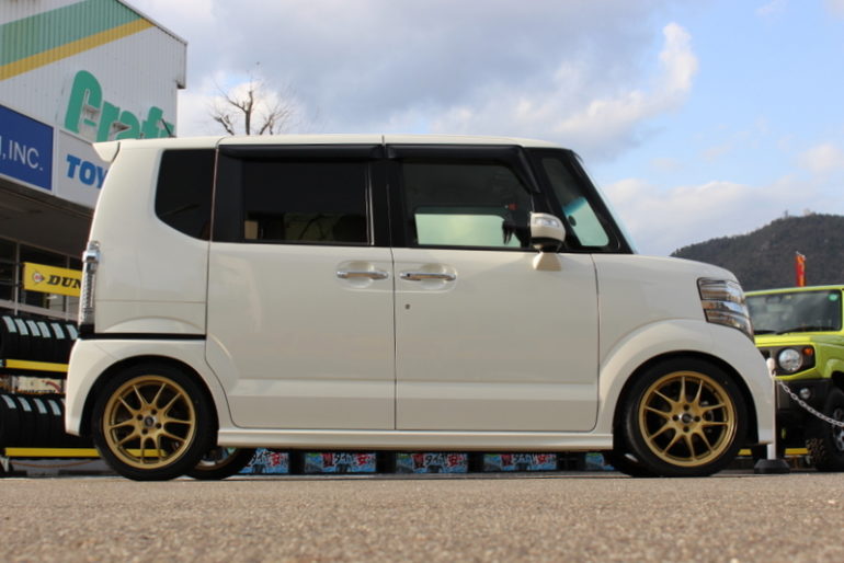 ■N-BOXカスタムにエンケイPF01ゴールドカラー&HKS車高調を装着!!