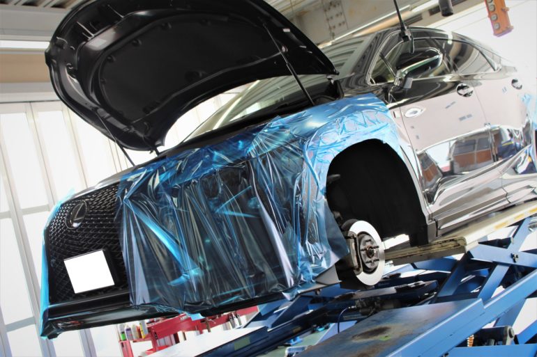 フェンダー周りに養生がされているということは・・・サスペンション交換ですね☆