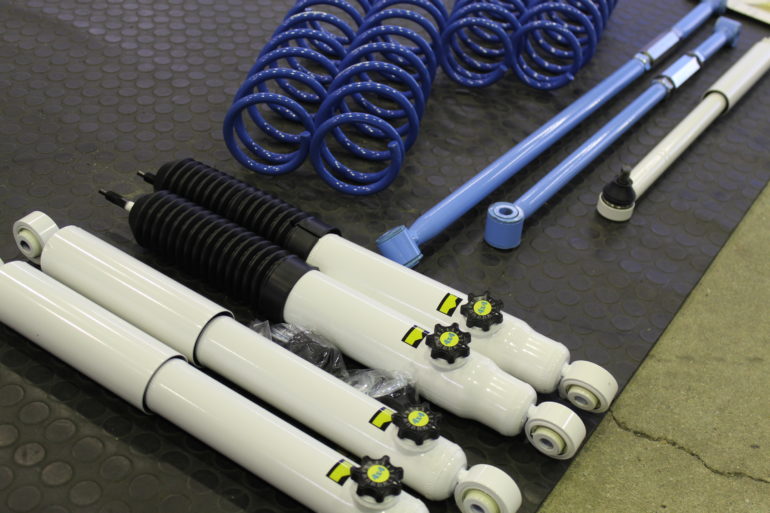 程よいリフトアップ幅の設定なのでブレーキホース類の移植が不要というところ。