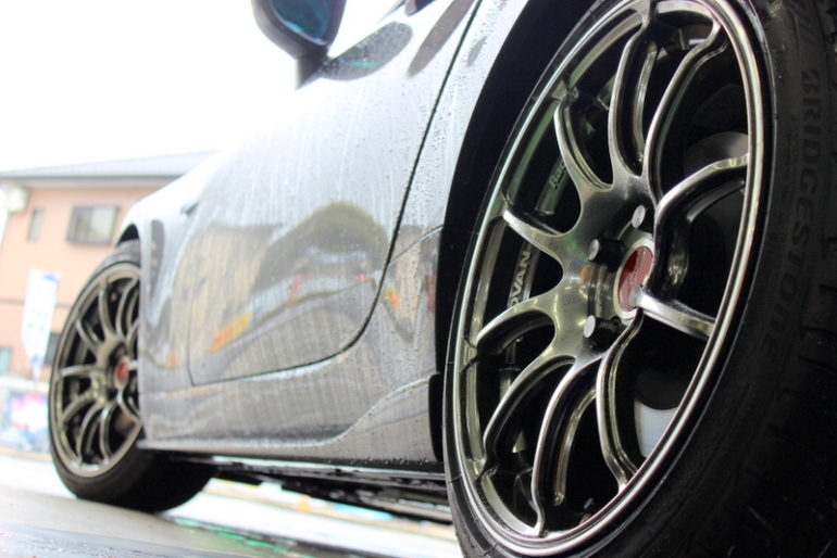 ■BRZ × BBS RI-A    いつもありがとうございます!!クラフト厚木店・のりかずです🚙   本日ご紹介するのはN様・BRZです。   N様からはタイヤ・ホイールのドレスアップをご依頼頂きましたよ✨   クラフト厚木店をご利用頂くお客様は出ヅラに拘りを持った方が多いです。   そして今回ご相談頂いたN様も出ヅラに拘ったサイズチョイスをしましたよ👍   それでは早速こちらをご覧ください↓     いかがでしょうかこの仕上がり♡   今回N様が選んだホイールは”BBS RI-A”となります!!   サイズは「フロント)8.0J-18インチ リア)9.0J-18インチ」となります。     先代の86・BRZでは前後「8.5J」を多く使っていました。   しかし今回はあえてフロントを「8.0J」にしています。   これにはオーナー様の拘りが込められているんですよね!!   その拘りとは…「キャンバーを寝かす方向にしたくない」と言った所!!   「8.5J」を装着する場合、フロントのキャンバーは寝かす方向に調整しなければはみ出てしまう事が多いんです。   また、N様は車検・点検等の入庫前提もあった為「8.5J」と言ったサイズはN様にとってリスクが大きかったですよね。     「8.0J」と聞くと、カスタム好きなら「少し細いかな?」と感じるかもしれません。   しかしクルマの仕様やオーナー様の希望によってはベストなチョイスでもあるんです!!   今回リアには「9.0J」を装着しています。   「9.0J」を選んだのには出ヅラがベストだった理由もありますが、他にも組み合わせる”タイヤサイズ”にも理由があるんです。   ちなみに今回装着しているタイヤサイズは「フロント)225/40-18 リア)255/35-18」です。     タイヤのカタログを見ると”標準リム幅”と言った項目がありますよね??   225/40-18の標準リム幅は「8.0J」、255/35-18の標準リム幅は「9.0J」となっているのが分かります。   タイヤは組み合わせるホイールの太さによってタイヤの形状が変わってきます。     上の写真をご覧ください。   これは俗に言う「引張タイヤ」と呼ばれる形状です。タイヤの太さよりもホイールの方が太い時になる形状ですね。     続いてはこちら。   タイヤの太さに対してホイールの太さが標準リム幅となっている場合の形状になります。   このように組み合わせるタイヤサイズ・ホイールサイズによってこんなにも変わってくるんですよね。   そして今回は車高のバランス等も踏まえ前後、後者の形状になるようタイヤ・ホイールサイズを選んでいるんですよ!!     そして最後にはアライメント調整を行い無事フィニッシュとなります✨✨   アライメントではフロントのキャンバー角の見直しと今まで少しづつズレていたトゥのリフレッシュを行っています。   こういて完成した出ヅラがこちら↓     前後ともにきれいな出ヅラへ仕上がっていますよね✨✨   今回のクルマは車高がしっかり下げられているクルマでしたので上の画像のように上手く収まりました。   車高によってはサイズを選びなおさないといけない場合もありますので、その際はクラフト厚木店へご相談くださいね♪       N様この度はクラフトをご利用いただきありがとうございました!!   ホイールの入荷にお時間を頂きましたが、無事かっこよく仕上がりましたね✨✨   キャンバーや出ヅラ、そしてタイヤサイズなどいろいろ拘り抜いた愛車はいかがでしょうか!   友人とワインディングを楽しんでくださいね~   それではまたのご利用お待ちしておりま~す!!   管理番号:0412603221006