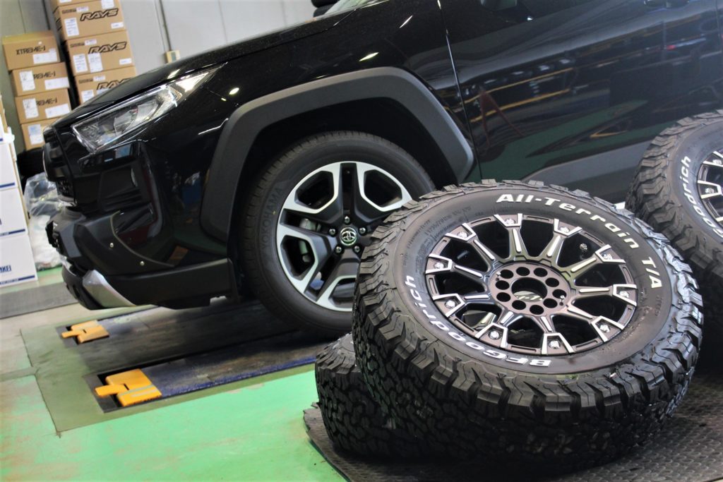 当店でのRAV4カスタムと言えば16インチor17インチでゴツゴツしたタイヤを履く
