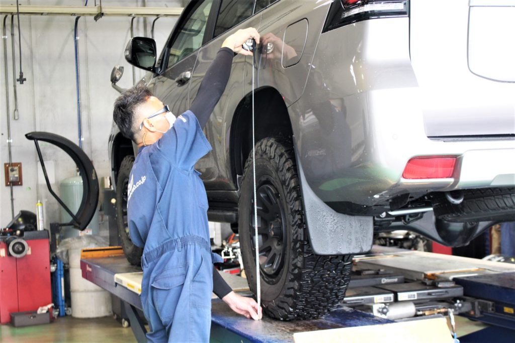 前後左右で測定し、希望車高になっているか。ご入庫時に比べどれだけ車高が上がったのか。