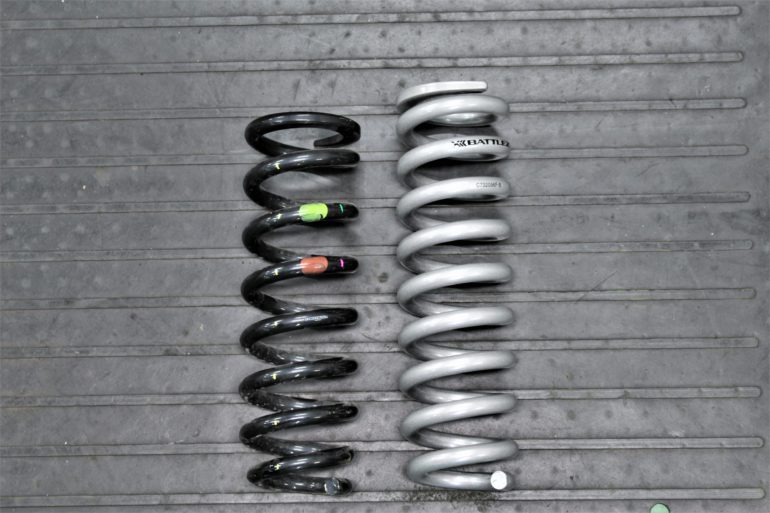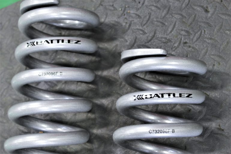 純正のスプリングと組み替えるだけで1.5インチ程のリフトアップが可能。