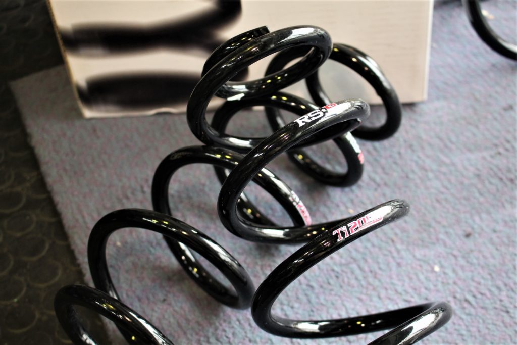 チタン配合剤によりヘタリ保証も付いている人気なダウンサス。フロント:-20mm~-25mm